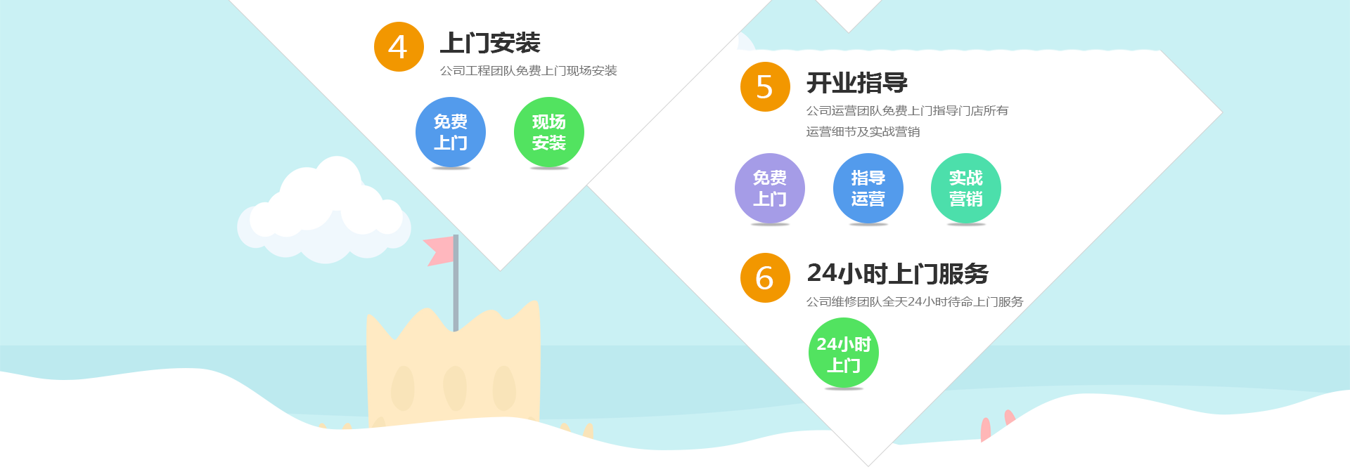 提供樂園整體的設(shè)計圖及效果圖、開業(yè)設(shè)備調(diào)試、開業(yè)指導(dǎo)及培訓。